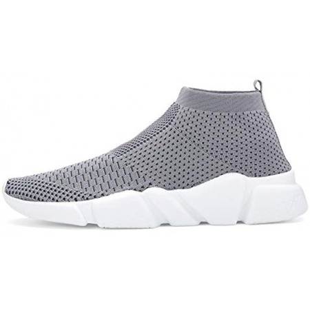 Santiro Men's Running Shoes Breathable Knit Slip On Sneakers Lightweight Athletic Shoes Casual Sports Shoes Grey